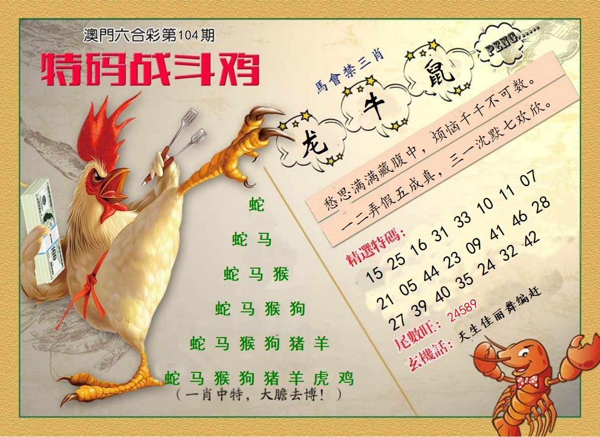 097期:家野特肖【家禽+蛇兔开: 猴11